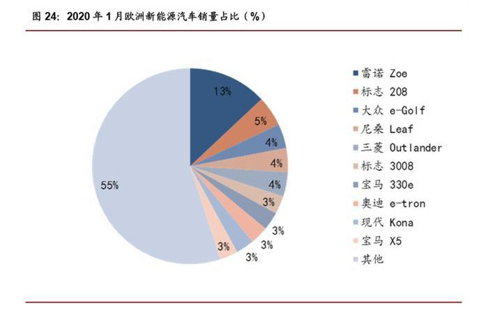 根據(jù)歐盟排放新規(guī)要求,自 2020 年起歐洲汽車(chē)制造商生產(chǎn)的新車(chē)中,95%的車(chē) 輛必須達(dá)到平均每公里二氧化碳排放量不超過(guò) 95 克;2021 年 100%的新車(chē)必須 滿足上述標(biāo)準(zhǔn)。如果不達(dá)標(biāo),每輛車(chē)每克罰款 95歐元。2020 年 1 月歐洲新能源 汽車(chē)注冊(cè)量達(dá)到 7.5 萬(wàn)輛,增幅高達(dá) 121%。LG 化學(xué)電池配套的多款新能源車(chē)型 銷(xiāo)量增速明顯,雷諾 ZOE、標(biāo)致 208、日產(chǎn) Leaf、奧迪 etron、現(xiàn)代 Kona 均為 歐洲 1 月銷(xiāo)量前十車(chē)型。未來(lái)憑借多款車(chē)型在歐洲市場(chǎng)放量增長(zhǎng),LG 化學(xué)動(dòng)力 電池的裝機(jī)量將持續(xù)提升。