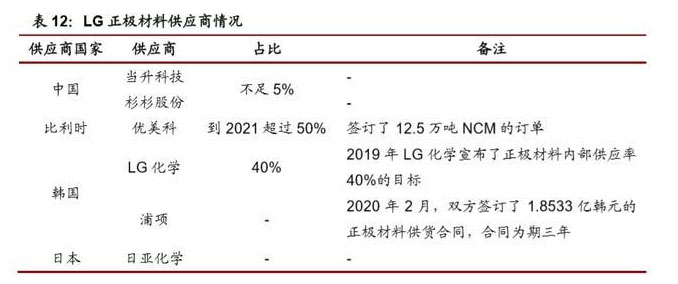 2019 年底,工信部發(fā)布了《新能源汽車(chē)推廣應(yīng)用推薦車(chē)型目錄(2019 年第 11批)》,其中首次包含了配套外資動(dòng)力電池企業(yè)的車(chē)型,這意味著之前被白名單擋在門(mén)外的 LG 化學(xué)正式回歸中國(guó)市場(chǎng),未來(lái)可能獲得更多中國(guó)車(chē)企的訂單。