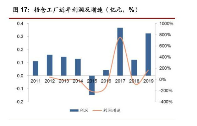 梧倉(cāng)工廠負(fù)責(zé)韓國(guó)國(guó)內(nèi)市場(chǎng)供應(yīng),同時(shí)調(diào)控全球市場(chǎng)訂單。2017 年梧倉(cāng)工廠實(shí)現(xiàn) 高速增長(zhǎng),收入和利潤(rùn)增速分別達(dá)到 91%、754%,但隨后兩年利潤(rùn)增速趨緩。 2019 年梧倉(cāng)工廠實(shí)現(xiàn)營(yíng)業(yè)收入約合人民幣 64.84 億元,利潤(rùn)約 3238 萬(wàn)元。