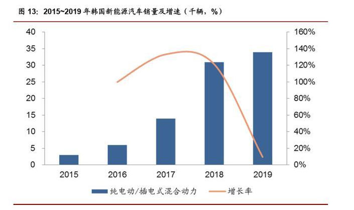 韓國(guó)的汽車(chē)產(chǎn)業(yè)也是其經(jīng)濟(jì)支柱,從 2014 年開(kāi)始推行綠色環(huán)保汽車(chē)計(jì)劃,確定 以發(fā)展純電動(dòng)汽車(chē)、混合動(dòng)力汽車(chē)以及氫能汽車(chē)為核心的推廣政策。