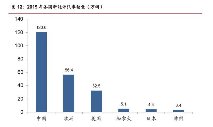 中國(guó)仍然是目前世界上最大的新能源汽車(chē)市場(chǎng),雖然去年下半年的銷(xiāo)量出現(xiàn)了逐月下滑的趨勢(shì),但 2019 年全年中國(guó)市場(chǎng)銷(xiāo)售了 120.6 萬(wàn)輛新能源汽車(chē),占據(jù)了 全球新能源汽車(chē)銷(xiāo)量的 55%。另一個(gè)主要的新能源車(chē)消費(fèi)市場(chǎng)則是歐洲,2019 年全球各個(gè)車(chē)企在歐洲共售出了 56.4 萬(wàn)輛新能源汽車(chē)。美國(guó)市場(chǎng)也占據(jù)新能源 市場(chǎng)的主要地位,2019 年美國(guó)共售出了 32.5 萬(wàn)輛新能源汽車(chē)。加拿大地區(qū)的消 費(fèi)者對(duì)于新能源汽車(chē)的接受度也比較高,2019 年加拿大地區(qū)共售出了 5.1 萬(wàn)輛新 能源汽車(chē)。日本和韓國(guó)也是亞洲不可忽視的電動(dòng)汽車(chē)消費(fèi)國(guó),2019 年日本地區(qū) 共售出了 4.4 萬(wàn)輛新能源汽車(chē),在韓國(guó)則有 3.4 萬(wàn)輛新能源汽車(chē)售出。澳大利亞、巴西、墨西哥、南非、新加坡等地區(qū)新能源汽車(chē)銷(xiāo)售總量都比較小,對(duì)全球新能源車(chē)市場(chǎng)影響并不算大。