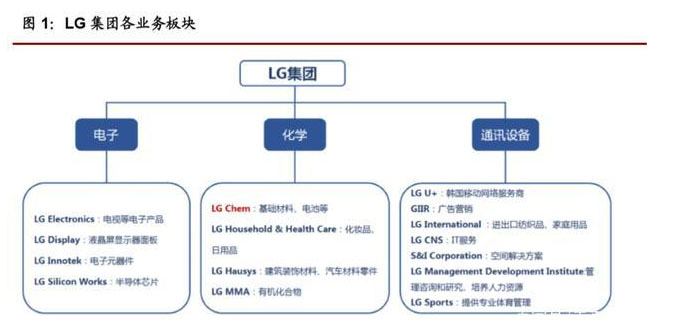 LG 集團(tuán)于 1947 年成立于韓國(guó)首爾,是領(lǐng)導(dǎo)世界產(chǎn)業(yè)發(fā)展的國(guó)際性企業(yè)集團(tuán),現(xiàn) 為僅次于三星集團(tuán)的韓國(guó)第二大跨國(guó)企業(yè)。LG 集團(tuán)在 171 個(gè)國(guó)家與地區(qū)建立了 300 多家海外辦事機(jī)構(gòu),集團(tuán)旗下共有電子、化學(xué)、電信和通訊設(shè)備三大主要業(yè) 務(wù)領(lǐng)域,旗下有 LG 電子、LG display、LG 化學(xué)、LG 生活健康等子公司。