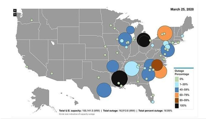 根據(jù)美國核電站運維時間表顯示,到2020年,美國21個州的58個核反應(yīng)堆中有56個計劃停堆換料。其中至少有31個反應(yīng)堆計劃在2月中旬至五月上旬停運,剩余的25個反應(yīng)堆都集中在8月下旬至10月下旬之間。