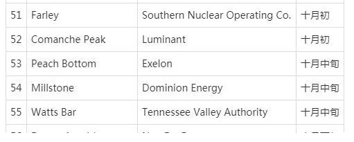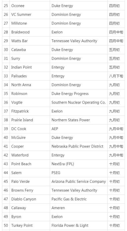 美國核電站2020年換料時間表(來源:Nuclear Energy Institute)