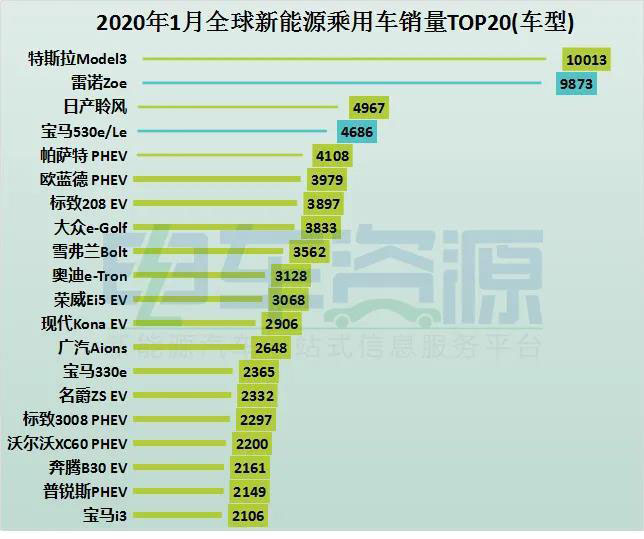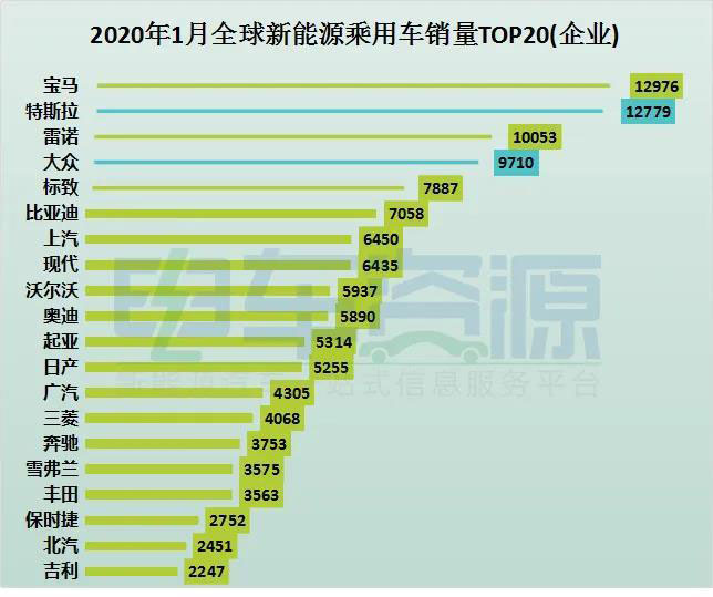 具體來(lái)看,2020年1月全球銷量冠軍由寶馬摘得,1月寶馬共銷售12976輛,同比增長(zhǎng)128%;而此前長(zhǎng)期占領(lǐng)第一的特斯拉,1月份以197輛之差,跌落至第二名;排名第三的是法國(guó)車企雷諾,其在1月銷量達(dá)到了10053輛,銷量首次上萬(wàn),增幅也達(dá)到了144%;大眾1月以9710的銷量位列第四,與其同屬一個(gè)集團(tuán)的奧迪和保時(shí)捷分別排名第10和第18,銷量分別為5890輛和2752輛。