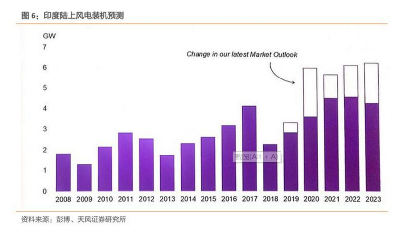 印度將于2017年首次對(duì)陸上風(fēng)能進(jìn)行拍賣。引入拍賣旨在完成2022年60GW陸上風(fēng)電的裝機(jī)目標(biāo),但現(xiàn)在來看很難達(dá)成。風(fēng)能拍賣的認(rèn)購不足,到2019年只有2.9GW被認(rèn)購。并且,在拍賣后,如果中標(biāo)者想要在古吉拉特邦簽署PPA,會(huì)要求匹配最低的出價(jià)。另外,印度也面臨招標(biāo)政策、土地使用以及電網(wǎng)問題,整體裝機(jī)量縮水8GW。