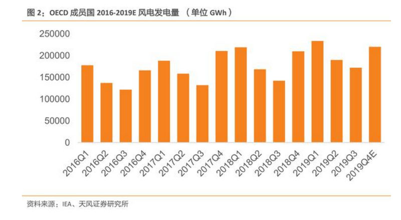根據(jù)IEA的數(shù)據(jù),2019年1-11月OECD成員國風(fēng)電發(fā)電量744Twh,同比增長12.3%,占總發(fā)電量7.71%。其中,美洲風(fēng)電發(fā)電量322.1Twh,同比增長10.8%;亞洲和大洋洲發(fā)電量30.6Twh,同比增長18.7%;歐洲風(fēng)電發(fā)電量391.3Twh,同比增長13%。值得注意的是,亞洲和大洋洲的發(fā)電量增幅最為顯著。