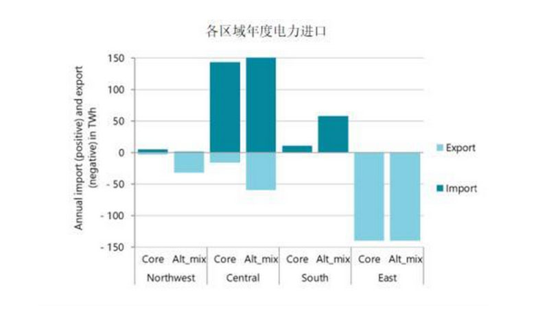 圖16各區(qū)域年度電力進(jìn)出口情況
