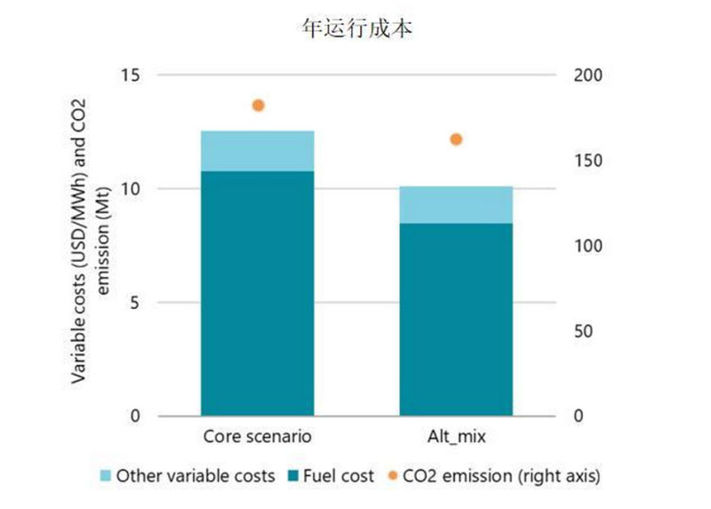 不同區(qū)域優(yōu)化電源組合也將進(jìn)一步減少成本和二氧化碳排放。西北部地區(qū)(緬甸)豐富的潛在水資源既足以滿足本國電力需求,還能通過跨境互聯(lián)出口到東盟其他國家,為東盟帶來經(jīng)濟(jì)和環(huán)境效益。