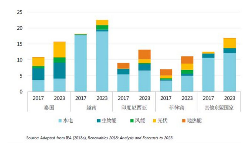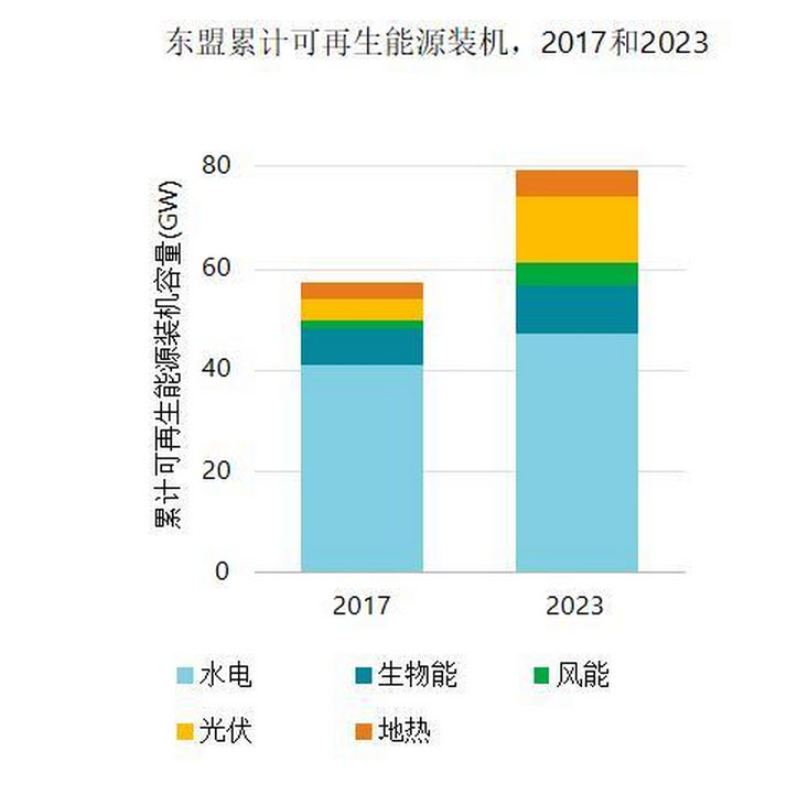 圖2東盟2017和2023年可再生能源裝機(jī)