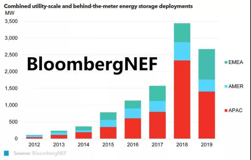 全球儲能市場年度新增規(guī)模自2012年以來出現(xiàn)首次縮減:韓國市場因火災(zāi)事故頻發(fā)而暫時一蹶不振;受到監(jiān)管法規(guī)不允許電網(wǎng)儲能資產(chǎn)計入輸配電價的影響,中國市場的增速也有所下降;歐洲雖然收緊了長期脫碳目標(biāo),儲能增長短期內(nèi)仍難以實(shí)現(xiàn);美國市場2019年也出現(xiàn)增長停滯,但是監(jiān)管法規(guī)調(diào)整以及公用事業(yè)的光儲采購需求,仍將助推儲能市場在近期內(nèi)復(fù)興。盡管挑戰(zhàn)不斷,BNEF預(yù)計儲能市場很快將會恢復(fù)增長態(tài)勢,原因有二:項(xiàng)目儲備充裕,且電力系統(tǒng)靈活性要求不斷提高。