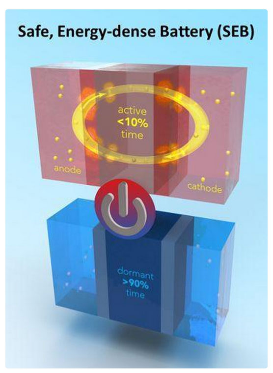 而王朝陽的研究思路則另辟蹊徑,他“以退為進”,先將活性材料鈍化,提高電池的安全性能;然后,再給電池加上一個“控制工作的開關”,讓電池只有在工作時才會以最佳狀態(tài)呈現(xiàn)(在使用前瞬間加熱到 60℃ 來保障高功率運作),其余時間則處于“冬眠”狀態(tài)。這樣一來,既可以保證電池的安全性,又可以延長電池的使用壽命。