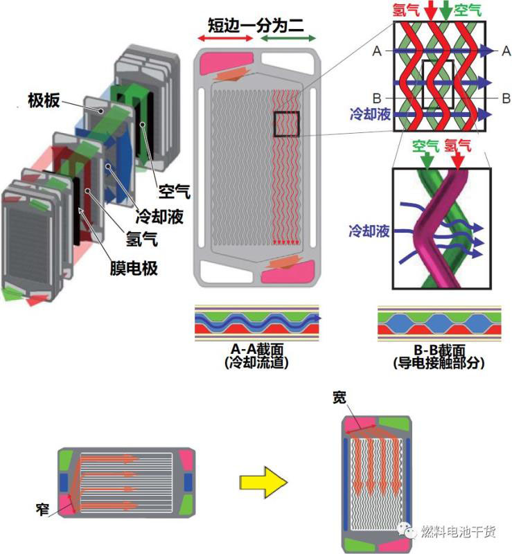 本田2008款FCX Clarity電池流道垂直流動(dòng)結(jié)構(gòu)