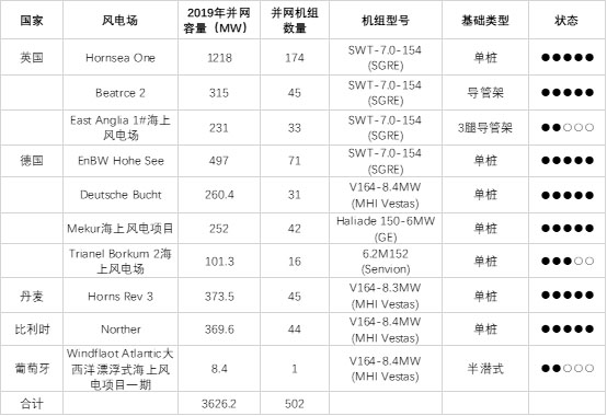 2019年歐洲海上風(fēng)電新增并網(wǎng)項(xiàng)目情況