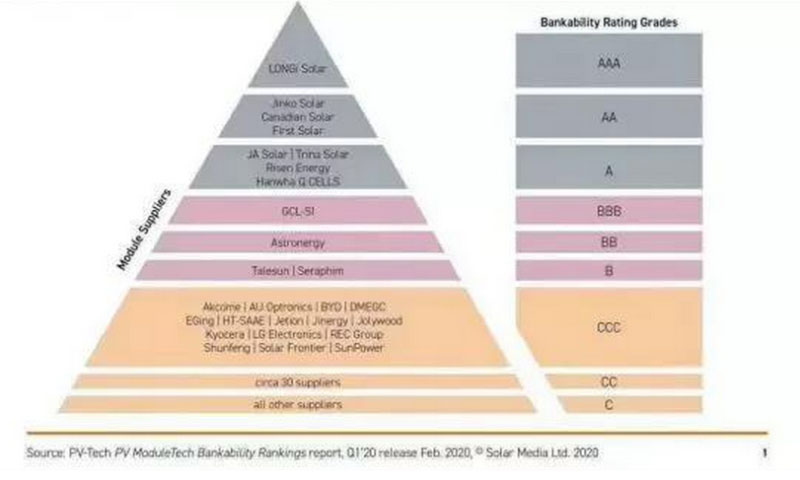 PV MODULE TECH 2020年Q1組件制造商可融資性評(píng)級(jí)結(jié)果: