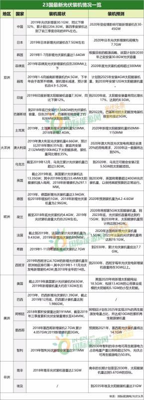 23國(guó)最新光伏裝機(jī)情況一覽