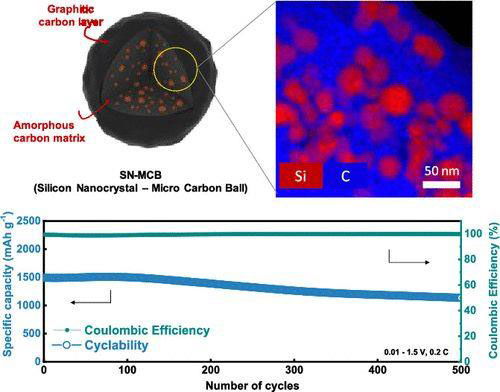 而KIST的新技術(shù)則有所不同。Hun-Gi Jung博士及其同事首先將紅薯衍生的淀粉溶解在水中,將硅溶解于玉米衍生的油中,然后將兩種溶液混合并加熱。結(jié)果是形成了碳-硅復(fù)合材料,其中微小的碳球阻止了硅溶脹。據(jù)悉,當(dāng)測(cè)試時(shí),發(fā)現(xiàn)由復(fù)合材料制成的陽極的存儲(chǔ)容量是類似石墨陽極的四倍,但在500次充電/放電循環(huán)中它們?nèi)员3址€(wěn)定。此外,利用新陽極的電池可在短短五分鐘內(nèi)充滿電至其全部容量的80%。