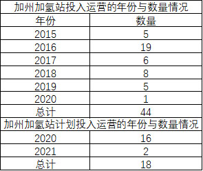需要指出的是,根據(jù)加州燃料電池合作伙伴組織(CaFCP)的數(shù)據(jù),截止2019年底,加州擁有加氫站44個(gè),其中在2019年新增了5個(gè)。這與H2stations數(shù)據(jù)有所出入。