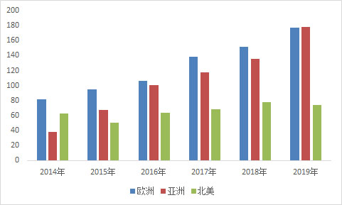從加氫站的保有量上同樣也能看出,歐洲一直是加氫站建設(shè)的重點(diǎn)地區(qū),亞洲則一直在快速追趕,并且在2019年實(shí)現(xiàn)了對(duì)歐洲數(shù)量的反超??紤]到中國(guó)大陸的加氫站情況由于信息不夠公開沒(méi)有被收錄,亞洲的加氫站數(shù)量實(shí)際上已經(jīng)大幅超過(guò)了歐洲,而且差距還會(huì)進(jìn)一步拉大。