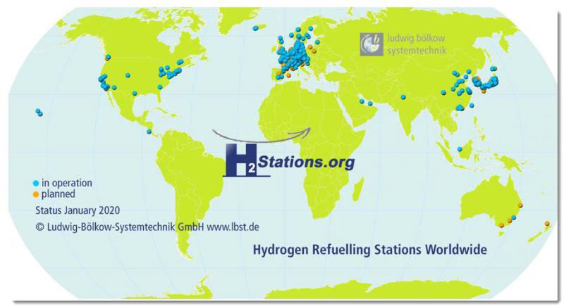 亞洲方面,截止2019年底共有178個(gè)加氫站,日本有114個(gè),韓國(guó)有33個(gè)。已確定的27個(gè)中國(guó)加氫站幾乎專門用于給公共汽車或卡車車隊(duì)加油。預(yù)計(jì)韓國(guó)將實(shí)現(xiàn)最雄心勃勃的近期增長(zhǎng),計(jì)劃在韓國(guó)計(jì)劃建造約40個(gè)汽車和公交車加氫站。