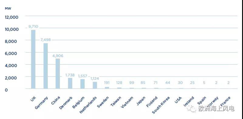 ▲各國(guó)海上風(fēng)電累計(jì)裝機(jī)容量