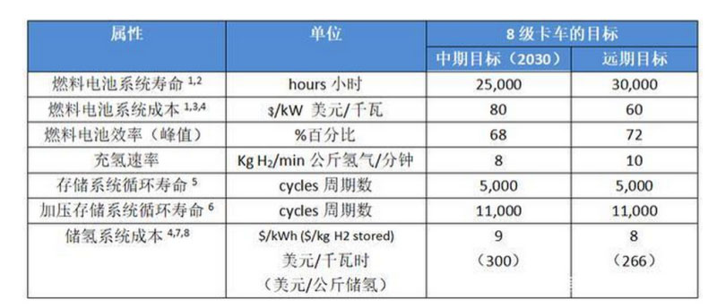 美國能源部先進卡車技術(shù) 電動動力總成路線圖分節(jié) 氫燃料長途卡車的技術(shù)目標(biāo)