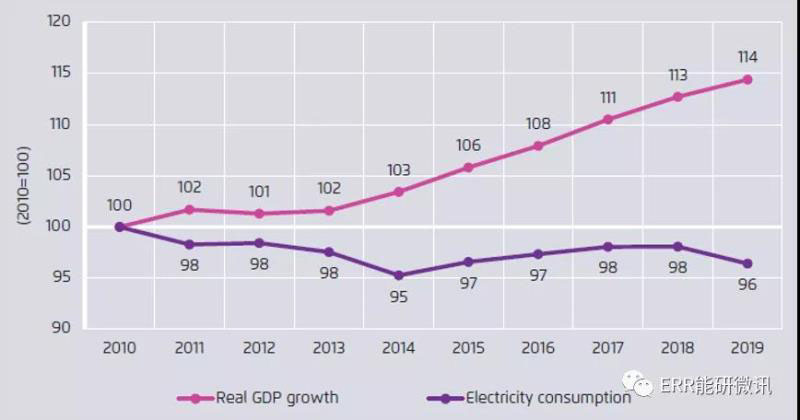 歐盟28國電力消費(fèi)量,國內(nèi)生產(chǎn)總值(指數(shù))