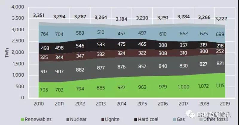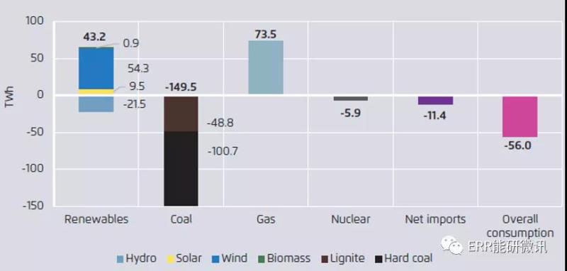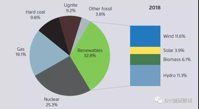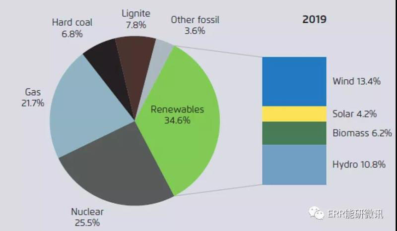 2018~2019年歐盟28國發(fā)電結(jié)構(gòu)的變化