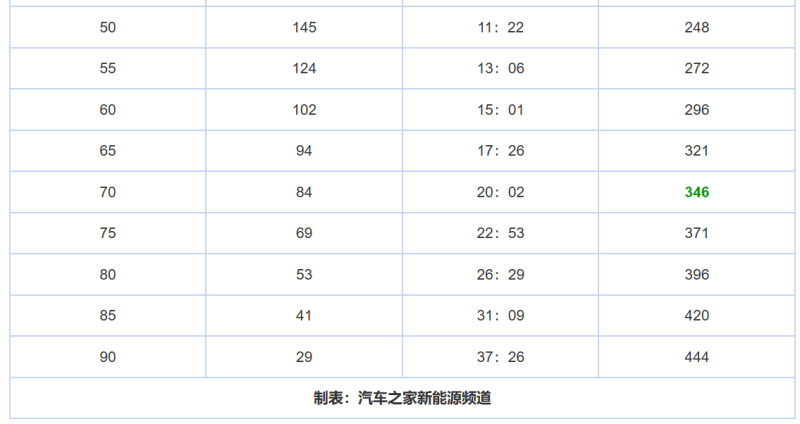 在充電速度方面,充電約10分鐘的時(shí)候,車(chē)輛電量達(dá)到45%,表顯續(xù)航里程增長(zhǎng)了208km(該續(xù)航里程對(duì)應(yīng)的是EPA標(biāo)準(zhǔn),并非NEDC標(biāo)準(zhǔn))。在充電約20分鐘的時(shí)候,車(chē)輛達(dá)到70%電量,表顯續(xù)航里程共增長(zhǎng)了330km。最終,該車(chē)從3%電量充到90%電量的時(shí)間為37分26秒,表顯續(xù)航增長(zhǎng)了428km。