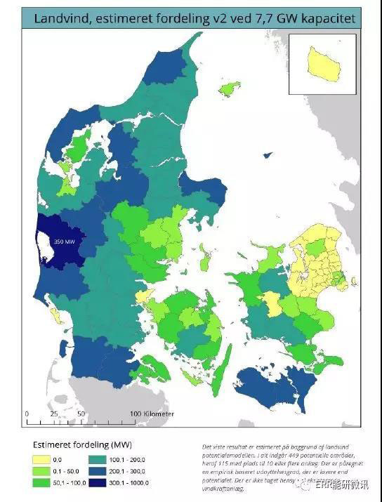 圖1 2017年丹麥海上和陸上風(fēng)電