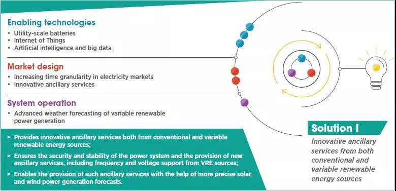 圖1還從支持技術(shù)、業(yè)務模式、市場設(shè)計和系統(tǒng)操作的角度審視了每個建議的解決方案(IRENA,2019b)。