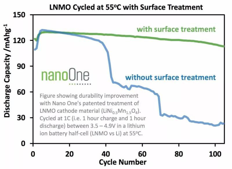 Nano One首席技術(shù)官Stephen Campbell博士說:“對Nano One的專利產(chǎn)品組合而言,這是對LNMO的一項重要的,低成本的耐用性改進(jìn)?!?