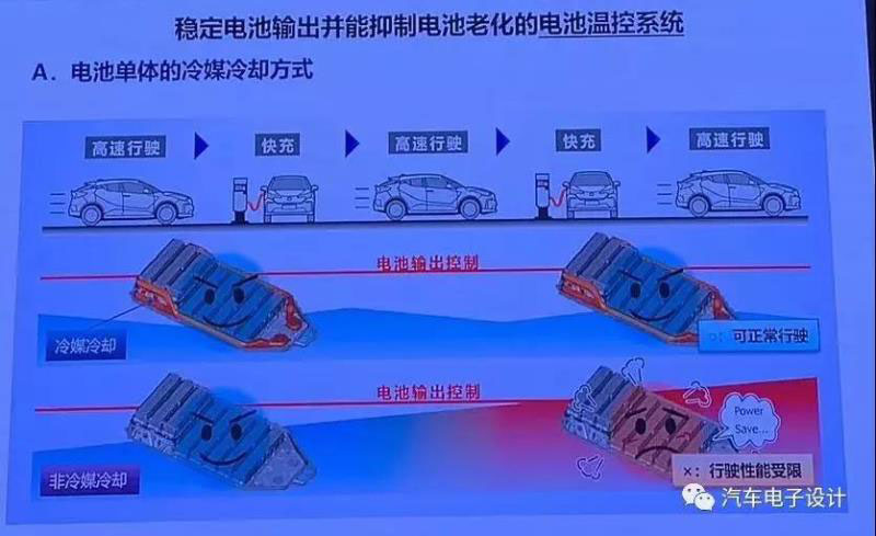 如下圖所示,這里有冷媒介入冷卻和冷媒不介入的兩種方式,可以和之前的歐藍(lán)德PHEV電池的設(shè)計可以比較,下面這個是一種極端的使用工況。