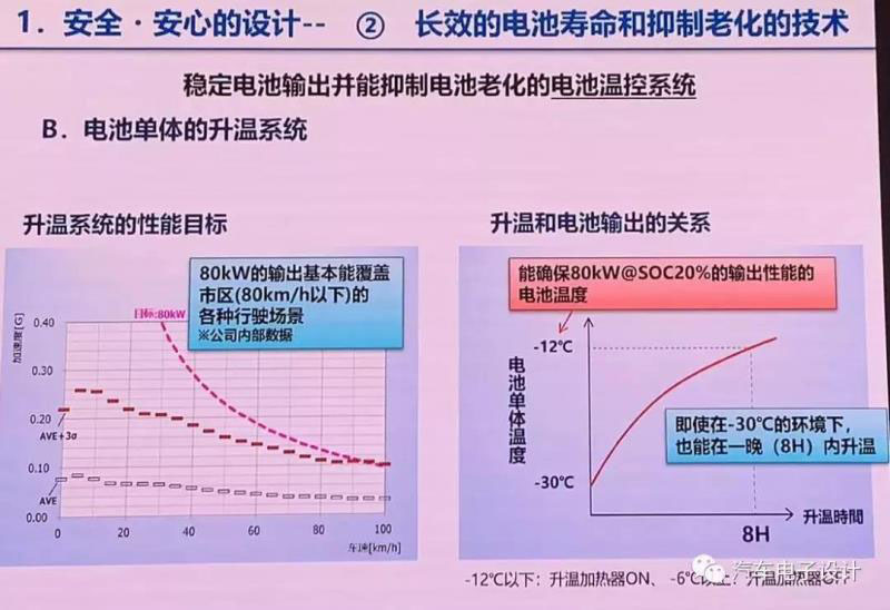 加溫的策略是在-12°以下開,然后在-6°以上關(guān)閉。根據(jù)這款車電池的散熱情況來看,目標(biāo)是覆蓋80kW的動力輸出,并且覆蓋80公里以下的行駛場景。
