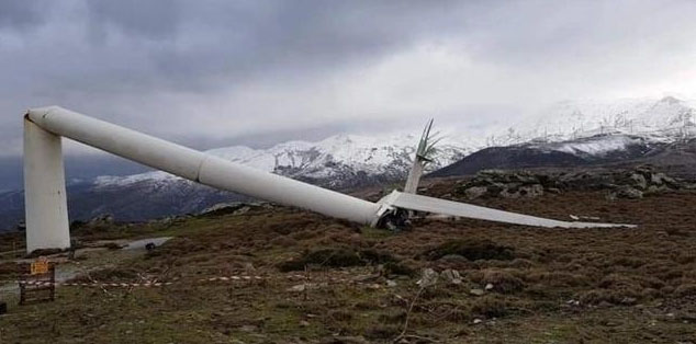 當(dāng)?shù)貢r間1月9日,希臘第二大島嶼埃維亞島上的三座風(fēng)力發(fā)電機組相繼遭到嚴重損毀。當(dāng)時島上的風(fēng)力一度達到了每小時160公里。其中一座機組頂部的三枚旋轉(zhuǎn)葉片中,有一枚從靠近轉(zhuǎn)軸的位置折斷。另外兩座機組情況更為糟糕,直徑達3米、高度達30米的金屬立柱從根部以上七八米的位置側(cè)向折彎墜地。有一根立柱倒下時壓在了一間活動板房屋頂上,所幸事發(fā)時并沒有值守人員在里面工作。目前,有關(guān)專家已經(jīng)就機組設(shè)計方案是否存在缺陷,以及金屬材質(zhì)是否達標(biāo)等方面展開調(diào)查。(總臺記者 王玉國)