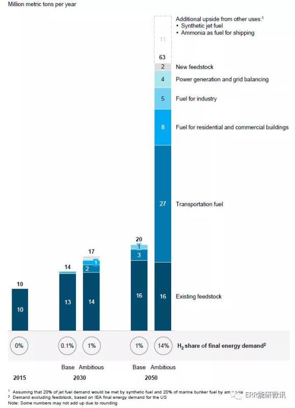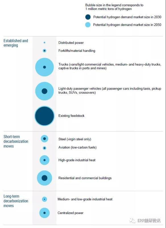 圖2 不同部門(mén)氫能的潛在需求(2030和2050視角)