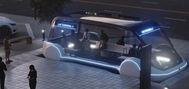 除了提出特制的電動(dòng)滑板、電滑輪來實(shí)現(xiàn)車輛進(jìn)入隧道之后的通行以外,特斯拉還發(fā)布了一張渲染圖,其中便是一臺(tái)具有載客量的電動(dòng)小巴。