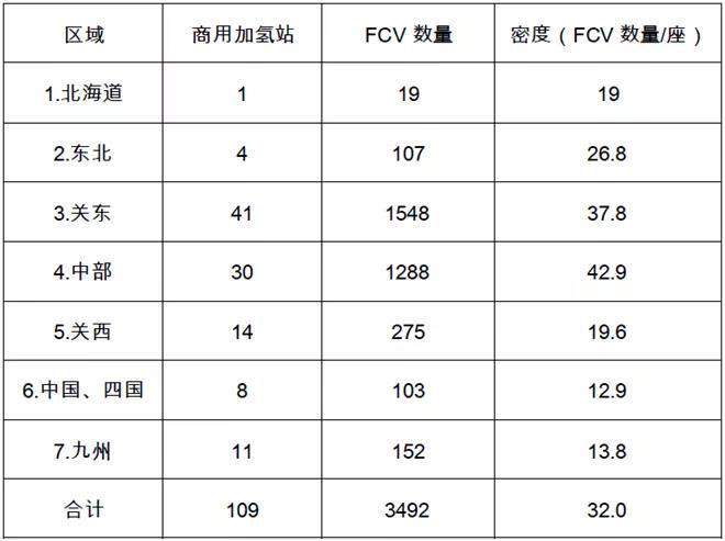 表3 日本加氫站與氫燃料電池汽車(FCV)數(shù)量分布