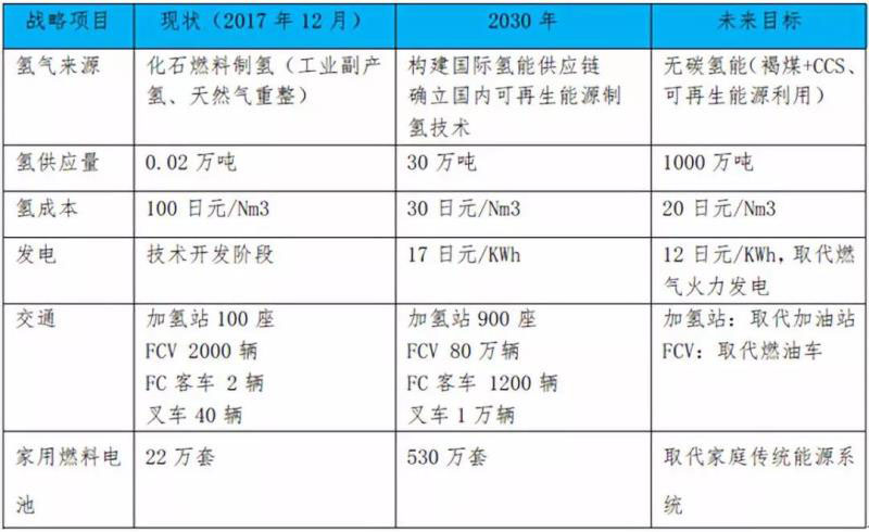 2017年,日本政府發(fā)布了《氫能源基本戰(zhàn)略》,為全球首例。戰(zhàn)略提出了2050年愿景和2030年行動(dòng)計(jì)劃,在氫的供應(yīng)和氫能利用方面提出詳細(xì)的目標(biāo)。