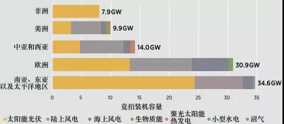 南亞、東亞和太平洋地區(qū)的國家在運用可再生能源競拍機制方面,同樣經驗千差萬別,既有新進入者,也不乏經驗豐富者。為了推動經濟增長,很多剛剛采用該工具的南亞和東亞國家,都在積極利用豐富的太陽能資源和在成本上具有競爭力的光伏技術。馬來西亞、菲律賓、泰國和越南就是最好的例子。基于減輕支持太陽能光伏產業(yè)發(fā)展所面臨的財政壓力,日本也已經運用競拍機制。與此同時,兩大地區(qū)可再生能源大國中國和印度每年至少舉行10輪可再生能源競拍。從技術層面來看,這些地區(qū)的競拍主要針對太陽能光伏,其次是陸上風電。目前,海上風電的競拍規(guī)模同樣開始迅速擴大。