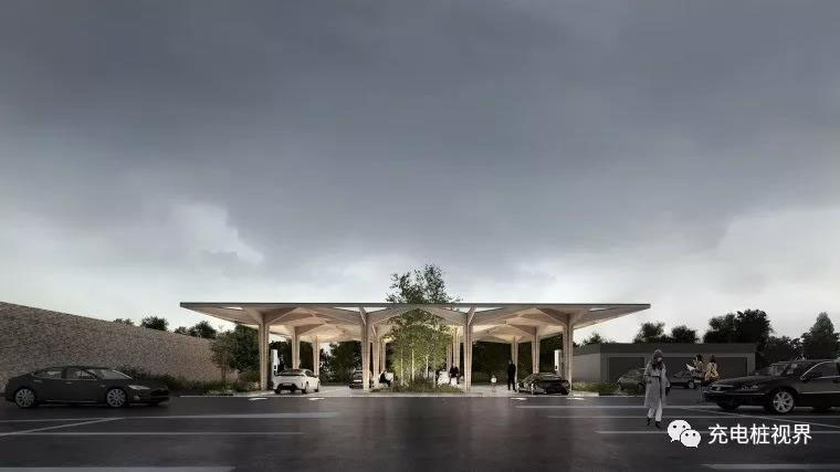 COBE設(shè)計(jì)事務(wù)所呈現(xiàn)給大家這48個(gè)超高速充電網(wǎng)絡(luò)中的第一個(gè)站點(diǎn),標(biāo)志著一種新的車(chē)輛充電方式的誕生,可以給人們以不同的充電和休憩感受。