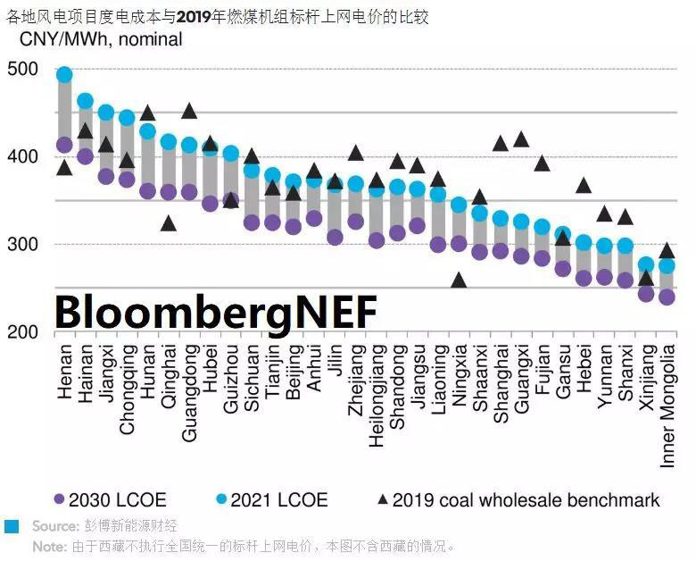 2021年,中國陸上風(fēng)電將實(shí)現(xiàn)全面平價(jià),中國風(fēng)電行業(yè)增長或受阻力。建造成本等于或低于燃煤機(jī)組標(biāo)桿上網(wǎng)電價(jià)的項(xiàng)目的重?fù)?dān)就落到了開發(fā)商的肩上。到2030年,BNEF預(yù)計(jì)新項(xiàng)目的平準(zhǔn)化成本會(huì)比現(xiàn)在低30%,31省中將有27省具備平價(jià)條件。