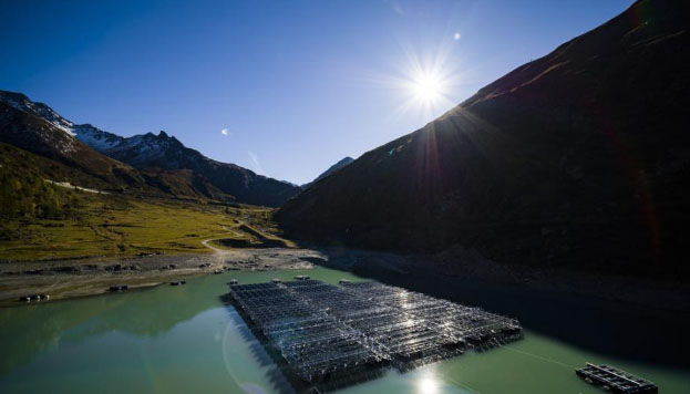 中國儲能網(wǎng)訊:當(dāng)?shù)貢r間10月8日,瑞士Bourg-Saint-Pierre,工人在高山水庫湖圖勒湖(Lac des Toules)上組裝帶有太陽能電池板的駁船。當(dāng)?shù)卣趫D勒湖上鋪設(shè)漂浮太陽能電池板站,該電池板站由36艘駁船組成,共將放置2240平方米的太陽能電池,其目標(biāo)是每年輸送800000千瓦時的電力,這相當(dāng)于約220戶家庭的年耗電量。圖片來源:IC photo