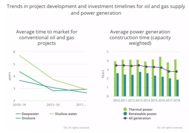 根據(jù)國際能源署專家的分析,全球能源行業(yè)投資更加青睞具有較短建設(shè)時(shí)間的項(xiàng)目,以降低風(fēng)險(xiǎn)較低。目前全球新增發(fā)電量的近70%都是在不到3年的時(shí)間內(nèi)建成的資產(chǎn)。而在2010年這一份額不到50%。