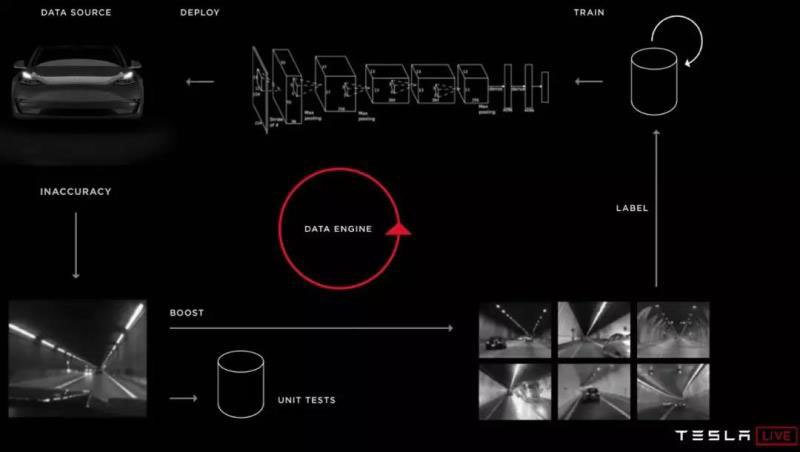 特斯拉在全球有超過70萬(wàn)輛車在路上行駛,它把每輛車、每一個(gè)傳感器、每一個(gè)“事件”(即人與方向盤、制動(dòng)踏板等的相互作用)作為數(shù)據(jù)點(diǎn)。獲取這些數(shù)據(jù),對(duì)其進(jìn)行分析,并利用這些數(shù)據(jù)改進(jìn)算法,創(chuàng)建新的算法,并將這些改進(jìn)通過空中升級(jí)OTA傳送到車輛上。