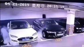 瞬間爆發(fā)的火光和濃煙,不僅燒毀了特斯拉,也殃及了旁邊的數(shù)輛車。4月21日晚間特斯拉在上海一小區(qū)地庫(kù)自燃的一幕,讓人們?yōu)橹戭澬捏@。