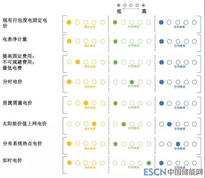 在考慮電費改革時,一個有效的處理方式就是將電費不同的組成維度分離,我們將這個過程稱為去打包。實現(xiàn)去打包的過程有三個維度:屬性精細度(例如:電量成本、容量成本或輸配電成本),時間精細度(電價隨時間變化而變化),以及空間精細度(電網的不同位置對電力的需求不同)。