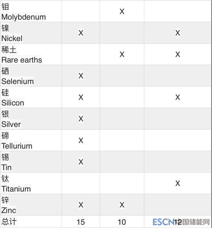 總結(jié)一下,太陽能技術(shù)對于各種金屬材料依賴較大(15種);其次是電動汽車/儲能(12種)、風(fēng)能(10種)。也就是說,太陽能、儲能相關(guān)技術(shù)對于金屬材料的依賴使得其較受地理政治(金屬材料資源分布)的影響,風(fēng)能技術(shù)受地理政治影響相對比較小。