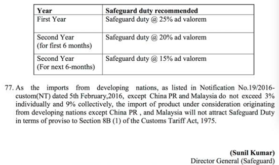 今年1月5日,印方做出該案初裁,印度保障措施總局向印度中央政府提出臨時措施建議,即對進入印度的太陽能光伏產(chǎn)品征收70%的從價稅作為臨時保障措施稅,為期200天。