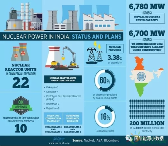印度莫迪政府上臺(tái)之初曾規(guī)劃到2032年核電裝機(jī)63吉瓦,但印度原子能?chē)?guó)務(wù)部長(zhǎng)宣布政府最近決定大幅度削減核電目標(biāo),預(yù)計(jì)到2032年核電總裝機(jī)容量?jī)H為22.48吉瓦。